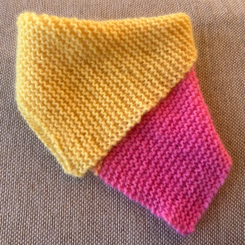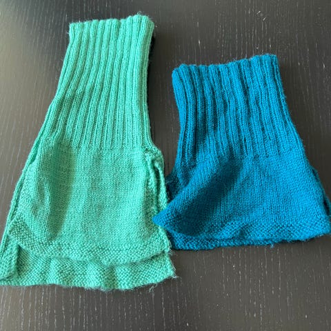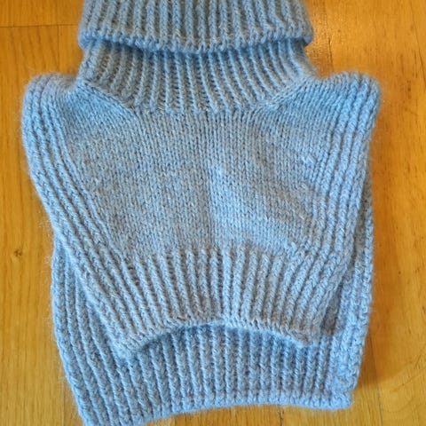 Strikket hals i 100% ull. Farge: koksgrå. Halsen er 15 cm bred på det smaleste, den er strikket i vrangbord og dermed noe tøyelig. Passer til barn ca 10 år.