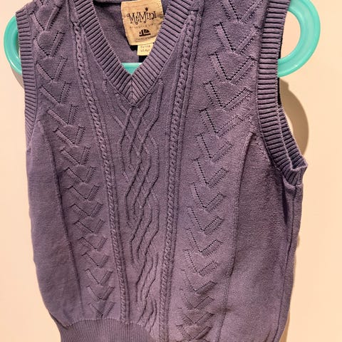 Har størrelse 74, 110/116 og 122/128 så her har du mulighet for søskenmatch. Nydelig strikkevest til barn med flott strikkemønster fra memini. 100% Merinoull.