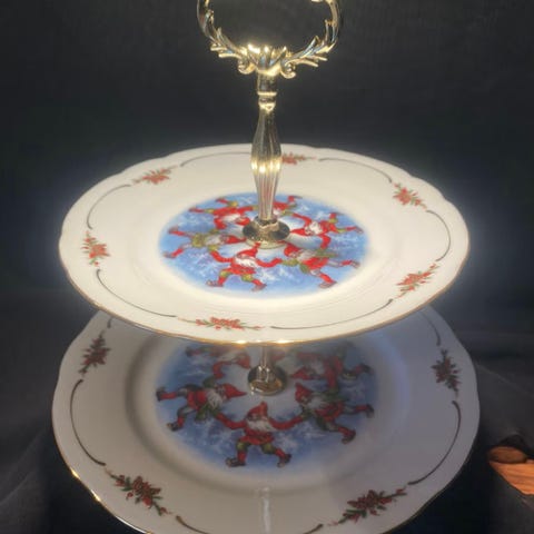 Vakkert tre-etasjers fat. Gammeldags jul fra firkløveren. Brukt kun en gang. Helt og pent