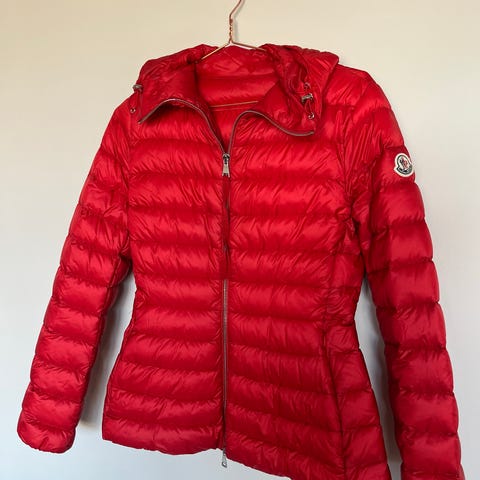Moncler Venan Giacca tynn jakke, selger denne pent brukte Moncler modell "Venan Giacca" jakken, pen rød farge❤️, den er brukt, men pent brukt og har minimalt med bruksmerker, som avbildet, ingen grove bruksmerker som hull, riper og den slags) Den er Moncler størrelse 4, som teknisk sett tilsvarer en Large, men denne er svært liten i størrelsen og går som en størrelse 2 synes jeg, som blir en small - Medium, bare å ta kontakt om du ønsker bilder på person, Ytterjakken har lommer på begge sider i front, lomme på bryst, lukking av jakken har man både knapper og zipper man kan bruke, som avbildet. 700++ salgsreferanser så her handler du i trygge hender ser mye fakes av gå rundt av disse, sikre deg safe handel med god og trygg pris og selger, bevis på at den er ekte kan fremlegges om ønskelig, kan sendes eller møtes i innlandet / Akershus / Oslo områdene ta kontakt ved andre spørsmål