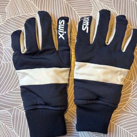 Swix splittvotter str 6/S til dame. Små i størrelsen, kan også passe til barn/junior. Noe slitt på utsiden, men hele og fine på innsiden.