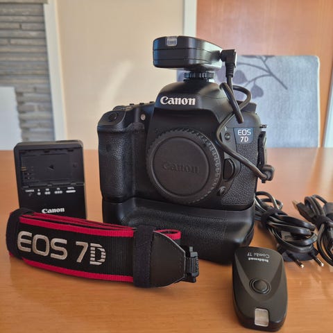 Selger en solid og pålitelig Canon EOS 7D med allsidig Tamron 18-270mm f/3.5-6.3 Di II VC PZD objektiv. Perfekt for både foto og video – passer godt til natur, sport, reiser og hverdagsbruk.