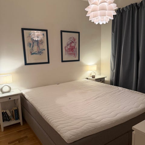 Sengen er en Venus modell fra bedrenetter. Den ble kjøpt vinter 2024 og har fortsatt garanti ( 2 års lovpålagt garanti, mens garanti på treramme og fjærbrudd er 25 år. Kvittering skal følges med