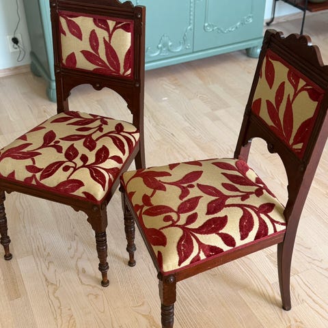 4 Stoler .Sannsynligvis i bjerk håndlaget i Moss av snekkermester. Ligner på Windsor/ Ercol stoler. Kr 600 pr stk. Kan leveres med varebil mot transportkostnader.