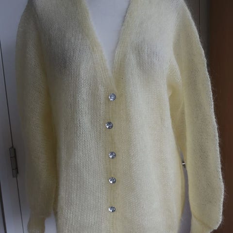 Dame håndstrikket jakke i 80% kid mohair og 20%nylon