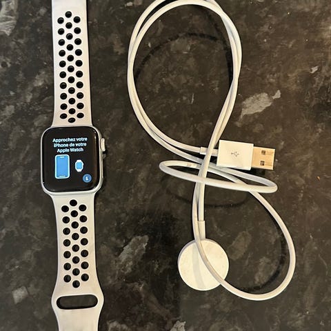 Apple Watch Nike+ serie 3 smartklokke med svart sportsrem. Lagringskapasitet på 8 GB. Batterikapasitet 81%.
