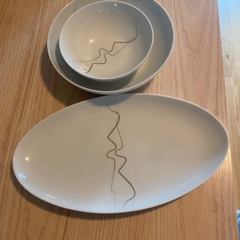 Bing & Grøndahl Erantis liten vase og to små skåler. 50,- pr del.