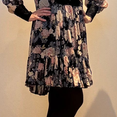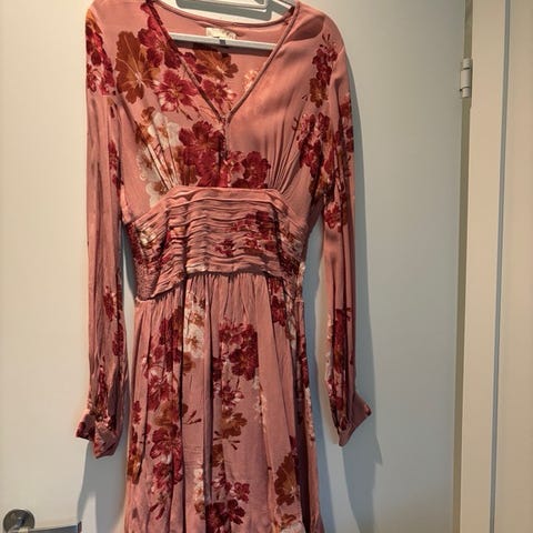 Selger denne nydelige byTimo kjolen i str S. laget av bomull. Kjolen har en lilla blomsterprint og lange ermer. Selger kjolen billig da belte mangler, men kjolen er like fin uten belte💜