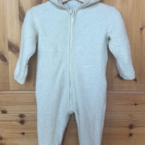 Pent brukt ullfleece jakke i str. 56-62 i beige. Blitt brukt av 1 barn, ingen merker eller slitasjer.