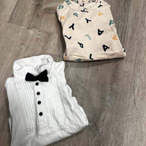 H&M body i bomull for gutt i størrelse 92. Bodyen er svart og har langermet design med knappelukking ved halsen og i skrittet.