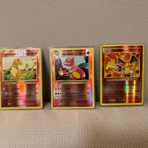 En bundle av en vanlig Charmander, Blaine's Charmander og en Blaine's Charmeleon fra 1995