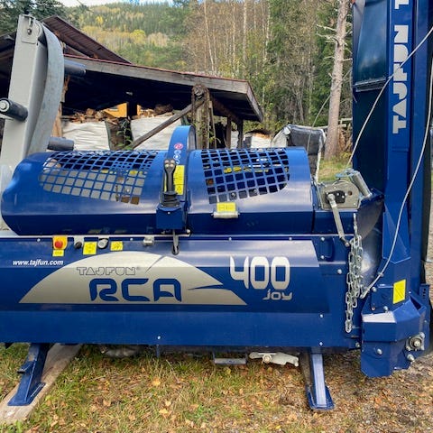 Klipper og kløyver store stokker i en operasjon uten å nøle.