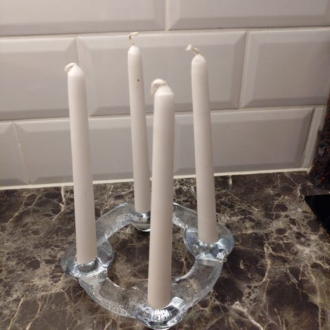 Flott rødoransje lysestake som pass r til vanlige lys. Kan også brukes som vase. 15cm høy. Pent brukt.