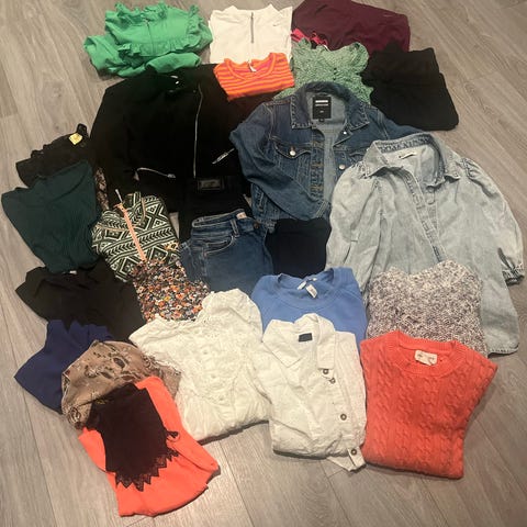 Hettejakker 5 stk str forskjellige pris stk fra 50 -75kr hettegensere fra 50 kr per stk. Bukser forskjellige str og pris.