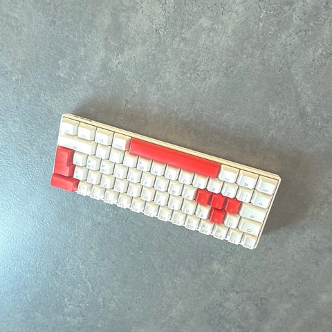 Følger med to verktøy for å fjerne tastene og røde taster til space, backspace, enter og WASD.