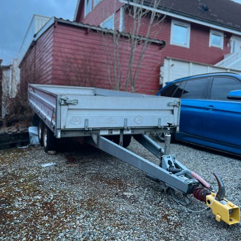 Gaupen tilhenger selges med karmer og presenning.