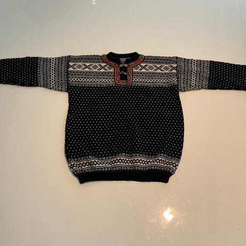 Selger en ubrukt Bråtens ullgenser i klassisk norsk lusemønster.