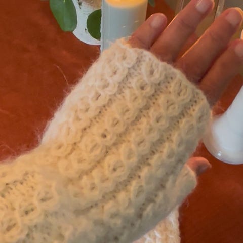 Pulsvanter i 100% ull. Hjemmestrikket! Romslige til dame, passer best litt større hender. Farge: dyp sennepsgul