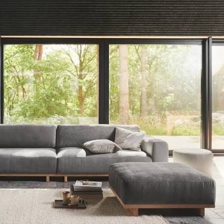 Bolia lenestol med krakk for salg. Mørk grå.