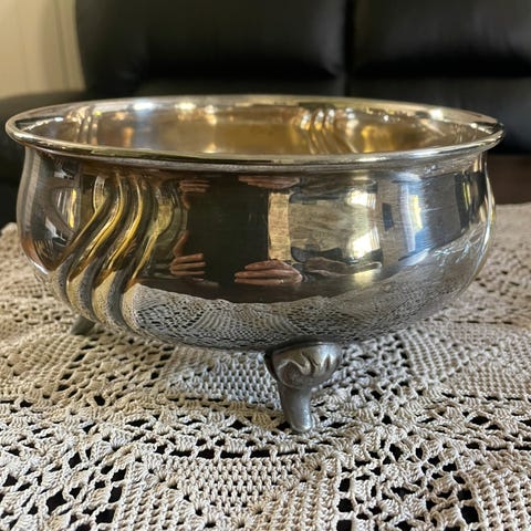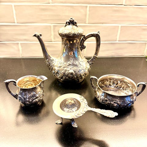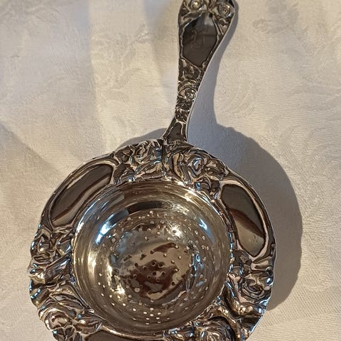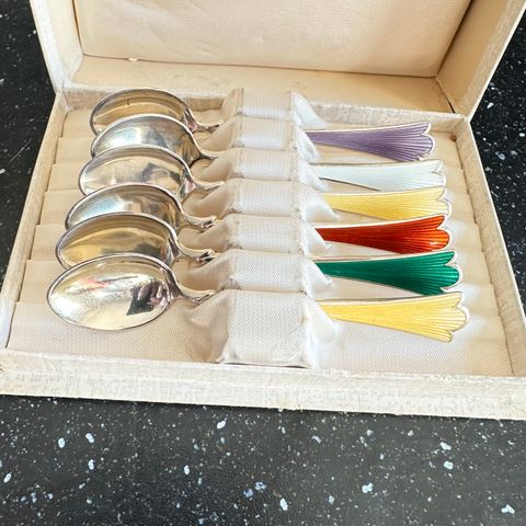 8 stk Antikke Mokkaskjeer i forgylt sølv med hvit emalje