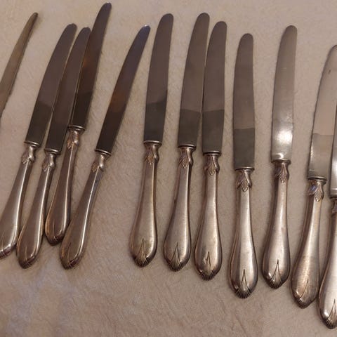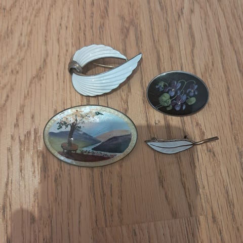 8 stk Mokkaskjeer i forgylt sølv med hvit emalje