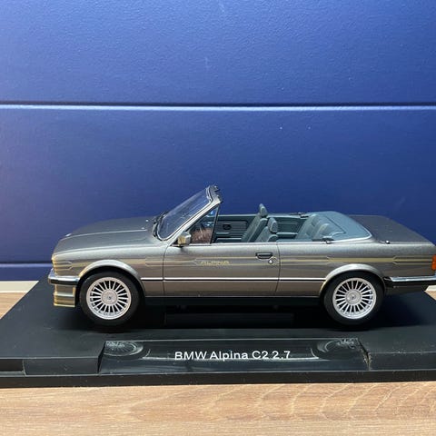 BMW 8-serie modellbil i british racing green farge med detaljer som åpne dører og hvitt interiør. Modellen gjengir designen av BMW 8-serie med tydelige linjer og karakteristiske frontlykter. 850i / 840. Åpningsbare dører. 1:24 Venstre blinklys foran er vekk. Høyre blinklys bak har en sprekk. Ellers ser alt ut å være på plass.