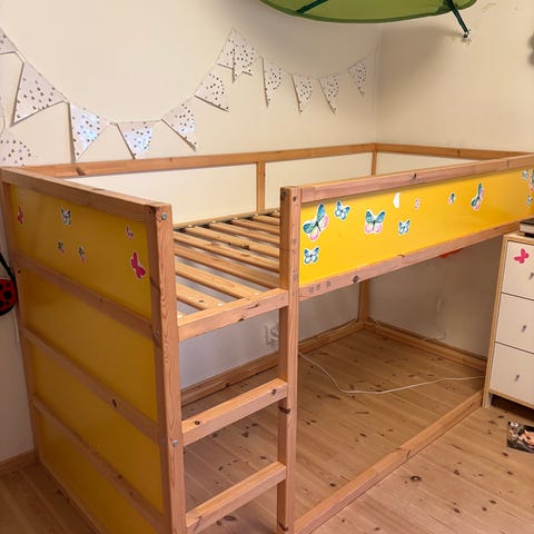 Køyeseng med rammemadrass til nederste seng.
