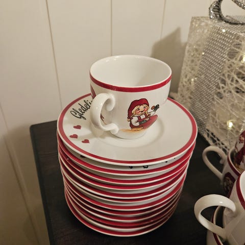8 krus, står og ikke blir brukt. Tror aldri de har vært brukt.pris 90 pr stk men ved kjøp av alle 8 så 75 pr stk. sender IKKE.