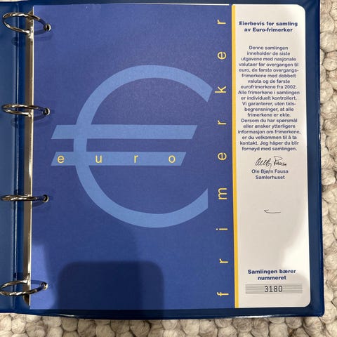 Påbegynt samling Euro-merker i stor perm. Bare merkene og blokkene her burde være verdt denne prisen;)