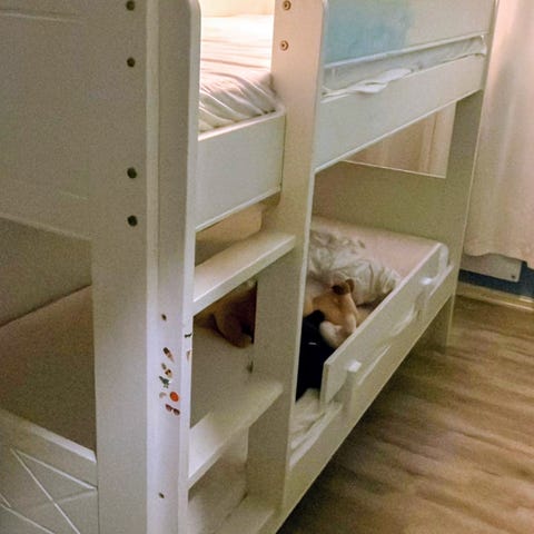 Solid seng slik at 2 voksne fint kan ligge i den og sengen er likevel stille/stabil.