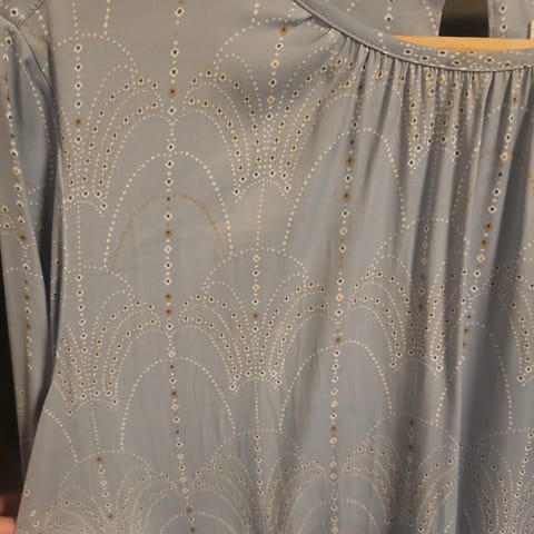 Kr. 350,-. Str. 38. Stor i str. Nydelig, lettstelt og behagelig bluse.