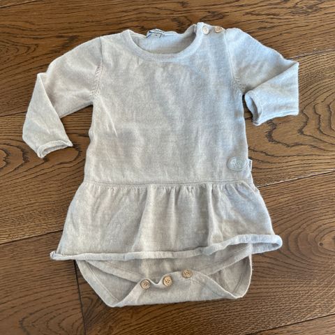 Her var jeg litt for rask med å ta av lappen, da kjolen dessverre allerede var for liten til babyen min. Kjolen er prøvd på én gang, men aldri brukt.