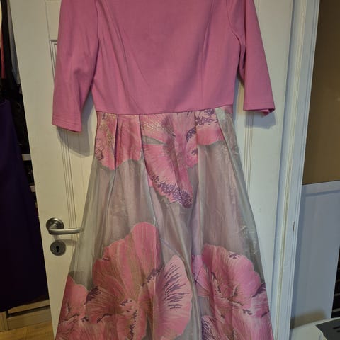 Coast festkjole laget av silke i fargen rosa. Kjolen er i størrelse 38 og har en design som passer til formelle anledninger.