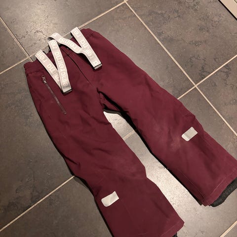En av Reimas forede vinterbukse. Modellen passer veldig fint til slanke barn. Pent brukt, men noe grånet på knær og i baken.