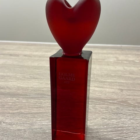 Sett med røde vintage hjertelysestaker fra Danske Holmegaard. Design Anja Kjær, Hearts and Roses.
