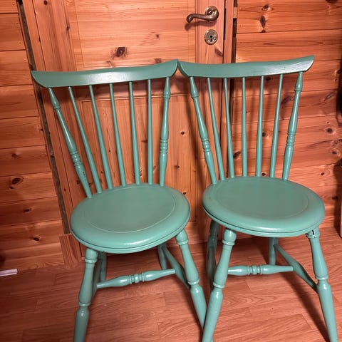 Selger nå 3 stoler fra søstrene grene i grønn fløyel og eik lignende ben.