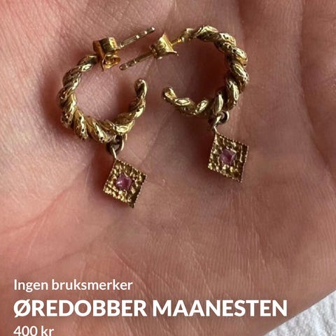 Øredobber fra Maanesten selges da de ikke blir brukt. Ble kjøpt for en del år siden, men har ikke blitt brukt. Øredobbene er derfor helt nye.
