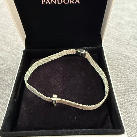 Selger dette Pandora armbåndet da det aldri har blitt brukt. Veldig pent og passer bra til både hverdag og anledninger. Går an å kjøpe charms til!