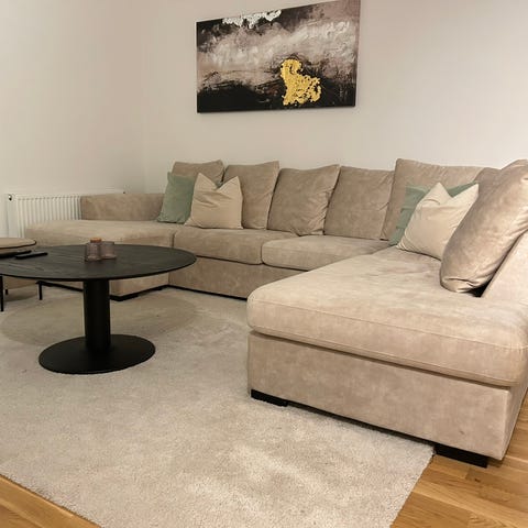 Dette er en ordentlig god kose sofa med 10 løse puter som settes hvordan man ønsker selv.