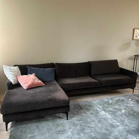 Grønn velur sofa fra Sofacompany selges. Kjøpt for ny pris kr 13999 i 2023. Sofaen er i god stand. Puter følger med om det er ønskelig.