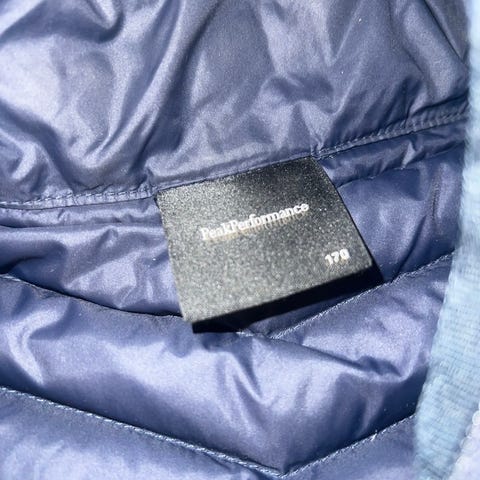 Peak Performance dunjakke for barn str 170 selges billig. Ubrukt. Hette kan tas av (knapper). Stramming i livet.