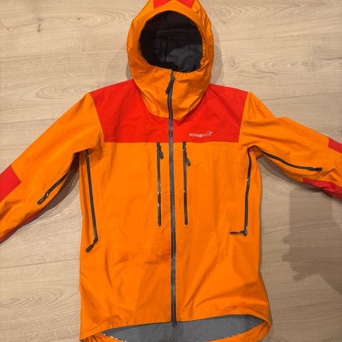 Jakken er i god stand! Ingen hull eller delaminering. Eneste er litt bruksmerker rundt toppen av glidelås, se bilder.