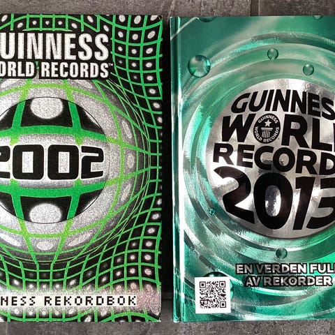 Guinness World Records 2009 og 2014 bøker. To bind med oversikt over verdensrekorder fra de respektive årene.