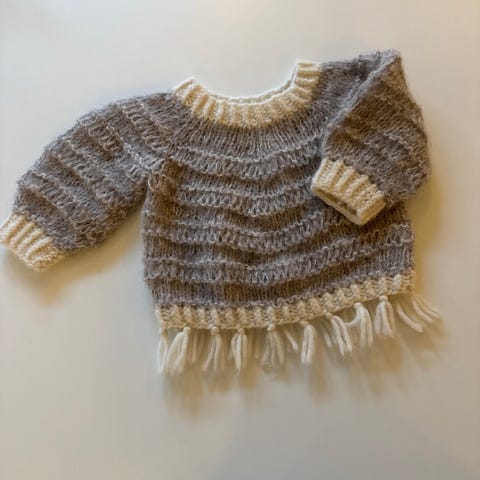 Helt ubrukt, hjemmestrikket i Alpakka Storm garn fra Viking😍 Mykt og godt garn, i beige/sand-farge!