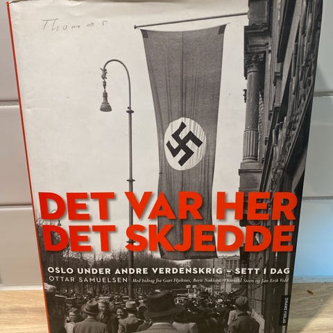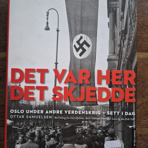 Otto Th. Sandvold bok med tittelen "Det var her det skjedde". Boken omhandler Oslo under andre verdenskrig og dekker historiske hendelser i perioden. Inneholder fotografier og tekst som dokumenterer krigshistorien i Oslo.
