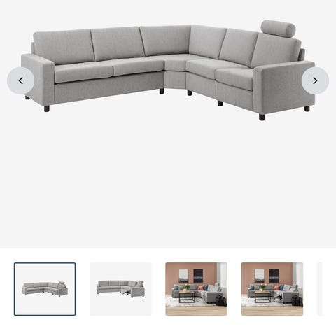 Lekker, nett hjørnesofa med god plassutnyttelse i svært pen tilstand. Stoffet er gråblått i øko-tex, beina i eik. Kjøpt ny i 2022 for 50 000+. Kan hentes eller leveres i Bodø ila. uke 1.