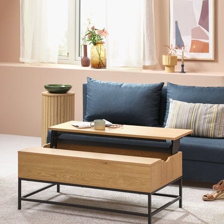 Søkeord: sofabord, lift top, heveplate, hev/senk, oppbevaring, eik, bord, stuebord, bord eik