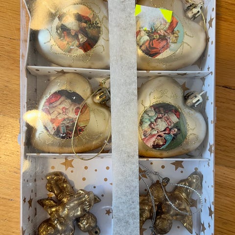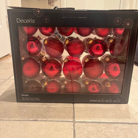 Selger ca en halv bærepose med julekuler i blå, hvite og sølv toner fra IKEA. Ca. 20 år gamle. Brukt, men i grei stand. Trolig nok til å pynte et helt juletre. Selges samlet.