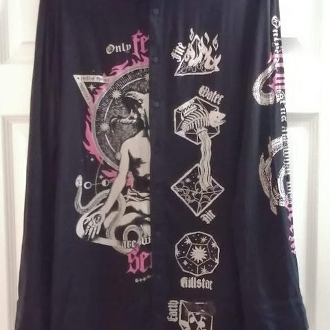Nattkjole/skjorte med flaggermus og lilla detaljer fra Killstar.