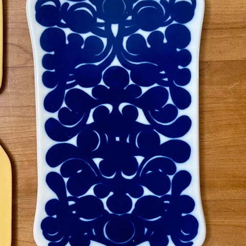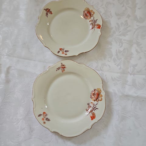 Settet er laget på Porsgrunn Porselen i 1952, og har dekorative blomster i flere farger.